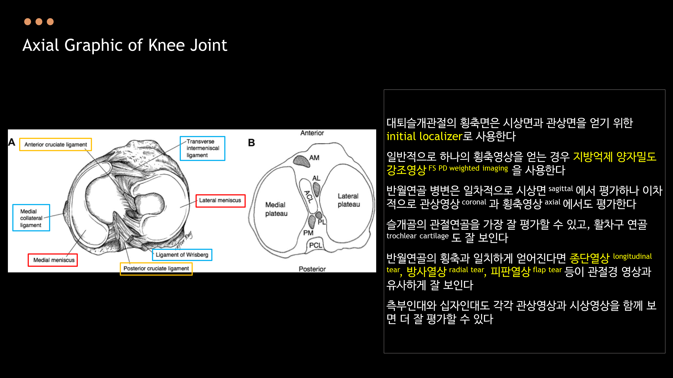 아래의 Normal Knee MR Anatomy를 숙지하고 오셔야, 강의에 어려움이 없습니다.