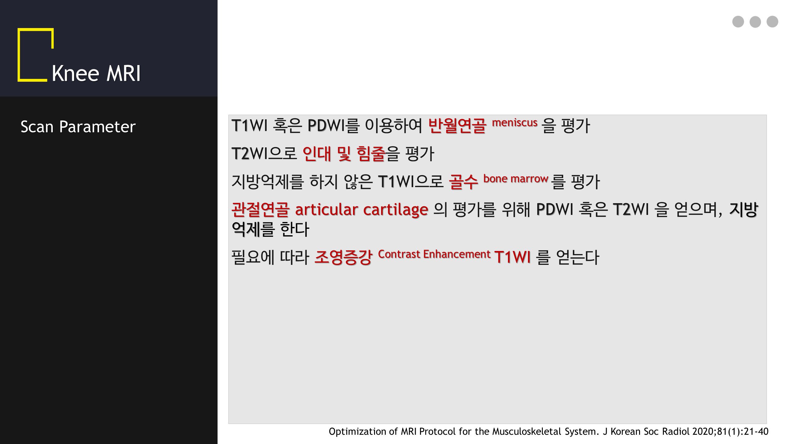 [대한침도의학회] The Knee MRI Approach (2021.12.11)