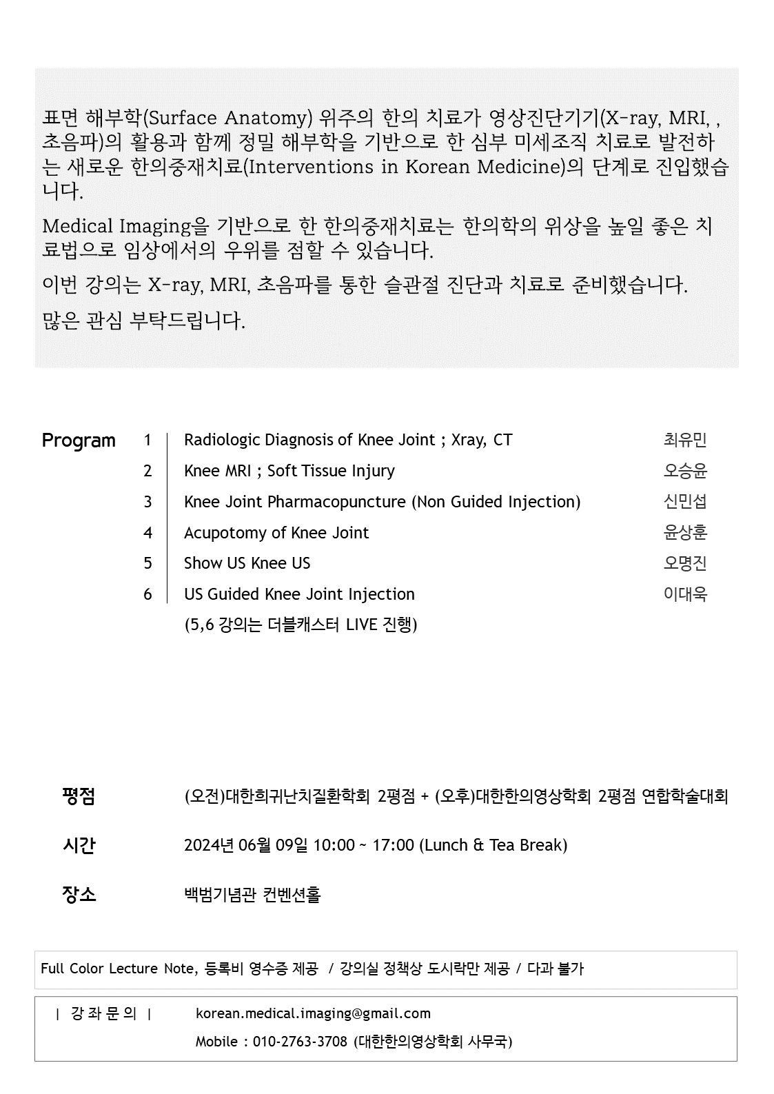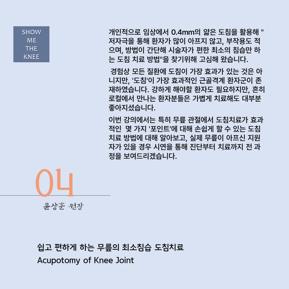 | 대한침도의학회 SPRING MEETING 2024 (0) | 2024.04.03 |